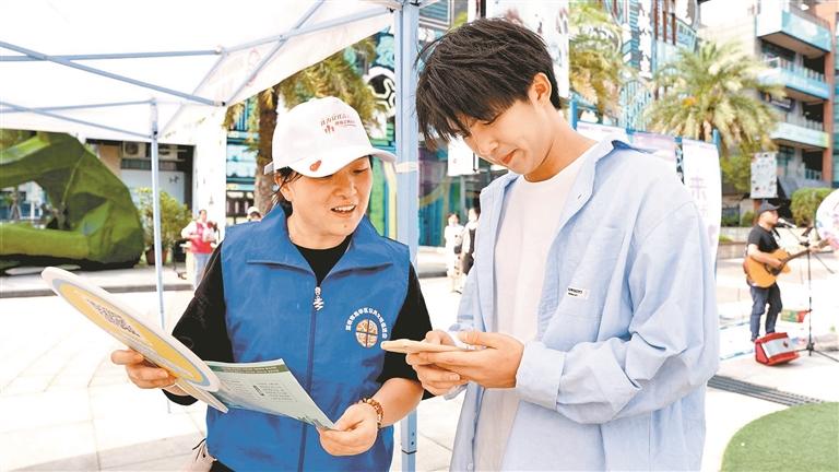 文明实践指导员向市民宣传文明建设工作。
