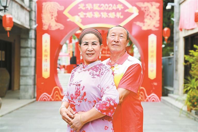 也是在做志愿者期间,温发予曾在社区见过其他老人参与过集体婚礼。那时,他暗暗有了一个念头:也要让我老伴有个仪式感很足的婚礼,给她一个小小的浪漫!这不,今年他就主动报名,参加捕鱼达人在线 2024年金婚集体婚礼。这一份来自丈夫主动的浪漫,也让詹萍英笑得甜甜的。