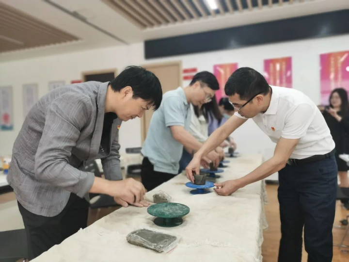 宝安区航城街道纪工委充分挖掘核雕、泥塑等本地传统文化资源,发挥廉洁文化的教育、引导、激励、浸润和约束功能,让廉洁理念深入人心。图为航城街道党员干部体验泥塑工艺,制作“正气杯”。(张存瑞 摄)