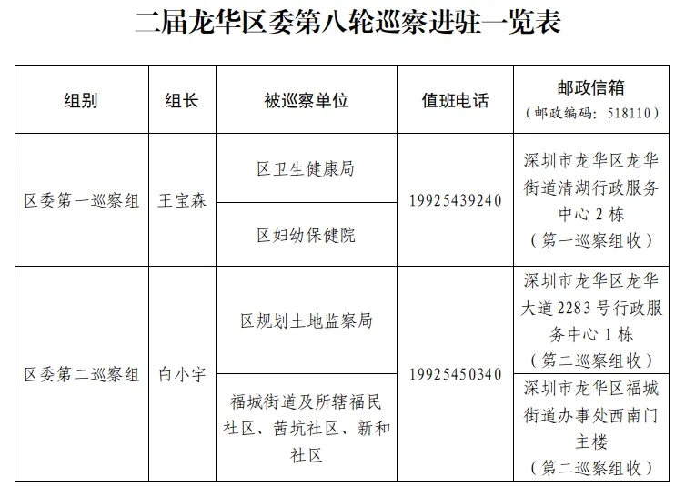 根据市委、区委巡察工作部署,近日,二届捕鱼达人在线 委第八轮巡察完成进驻工作。2个巡察组将对区卫生健康局党组、区妇幼保健院党委,区规划土地监察局党组、福城街道党工委及所辖福民社区、茜坑社区、新和社区党委开展巡察。