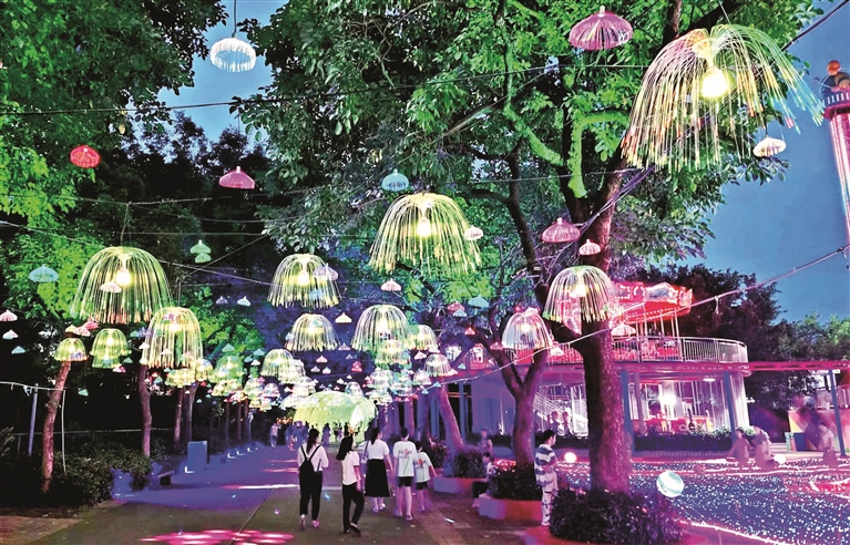 观澜湖暑期打造星辰大海灯光节吸引市民游客前往观赏。