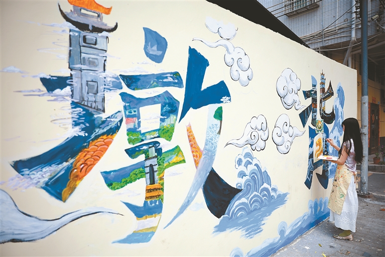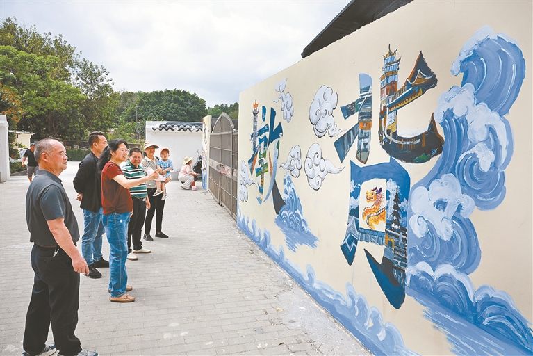 一面斑驳的老墙焕发新生,成为龙华街道向联社区文化新地标。近日,走进墩背小院,一幅由社区居民集体创作的彩绘艺术墙格外引人注目。