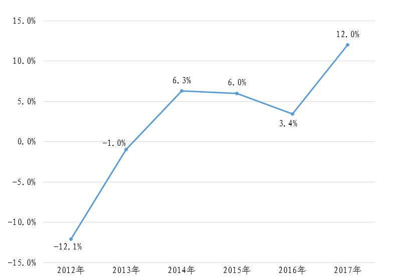 图2 2012-2017年规模以上工业增加值同比增长情况表