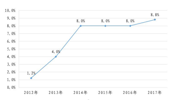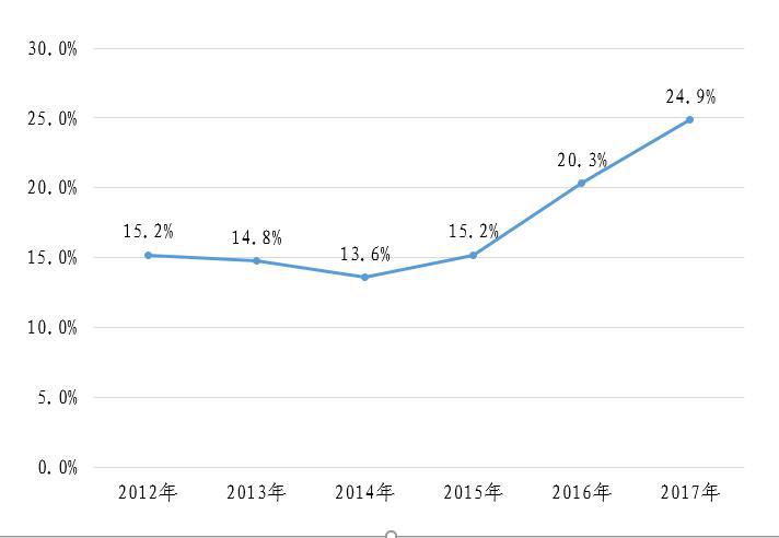 图4 2012-2017年社会消费品零售总额增长速度趋势