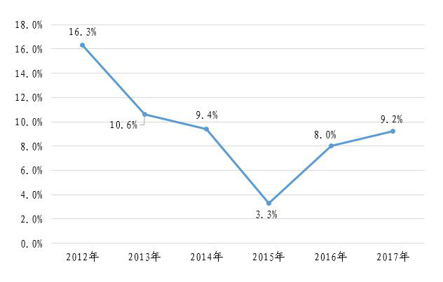 图3 2012-2017年固定资产投资完成额增长速度趋势