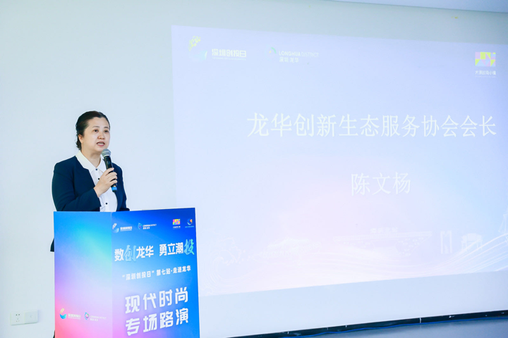 深圳市龙华创新生态服务协会会长陈文杨分享了时尚产业可持续发展概念以及跨界融合的大趋势,提出建立品牌自信的重要性,讨论了时尚产业的发展方向,为来自大浪时尚小镇的标杆性企业们拓展思维,引发思考。