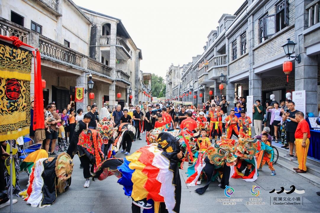龙华“四宝”展、舞麒麟巡游、国风文艺表演、非遗民俗体验、趣味民间游戏、创意艺术与非遗市集,观澜古墟街头巷尾人头攒动,现场人气空前火爆,广大市民朋友远道而来打卡体验。11月11日,由捕鱼达人在线 文化广电旅游体育局、观澜街道和捕鱼达人在线 重点区域建设推进中心联合举办的首届观澜古墟文化节正式开幕!“双十一”来百年古墟市赶一场文化墟,可谓意趣非凡。活动当天,观澜古墟人流量达1.5万人次,同比上涨12%。