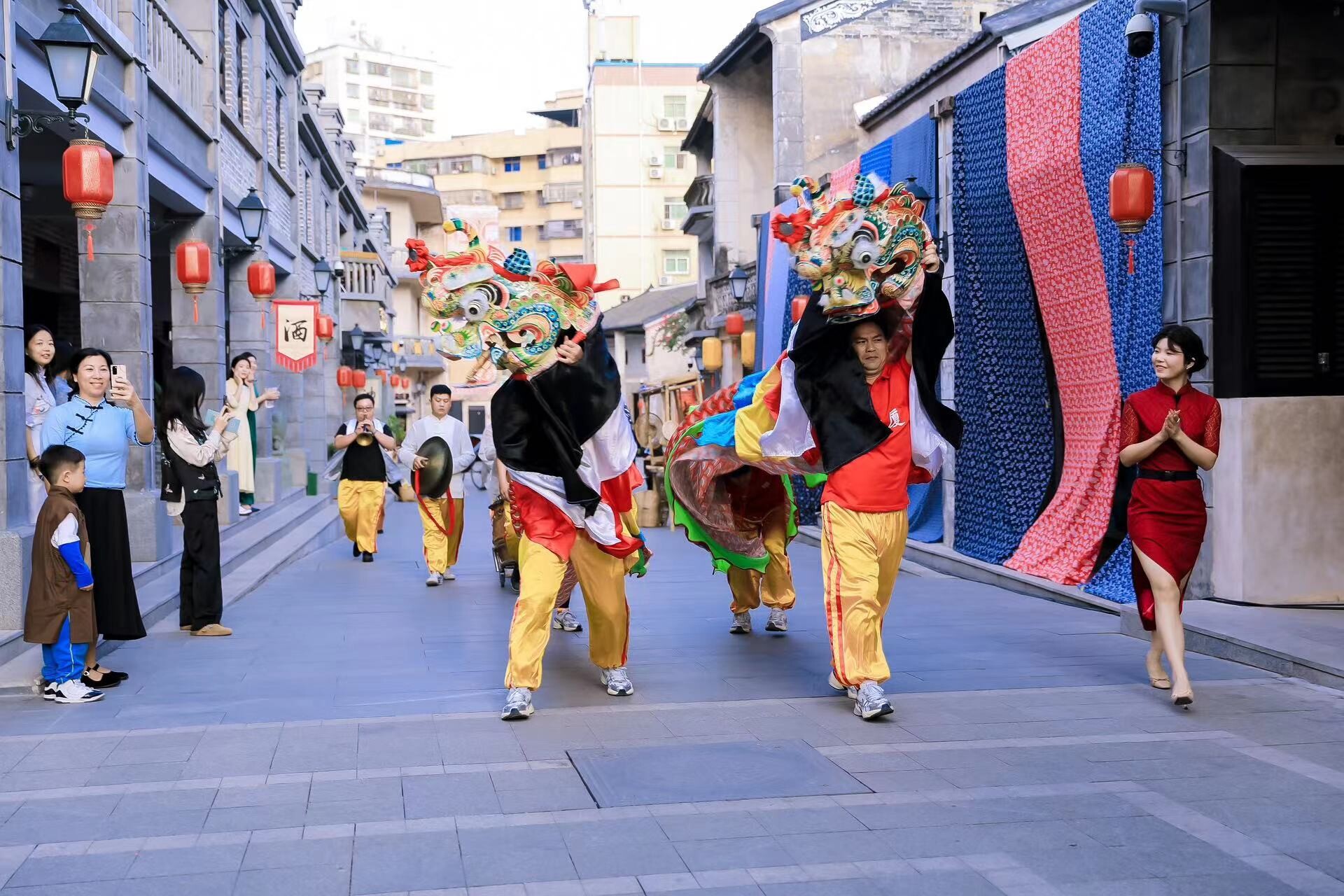 据了解,《古墟1938》以华南地区沦陷,广东抗战爆发为时代背景,深入挖掘观澜独特的客家传统侨乡文化,结合观澜古墟融合客家、广府、南洋风格于一体的建筑形制格局,以观澜大街为场景载体,选取多个建筑空间,通过舞美表现形式完成整体复古氛围的营造,同时融入了客家山歌、舞麒麟等非遗文化项目,并邀请市民实地参与共创,身临其境地感受这段红色历史。