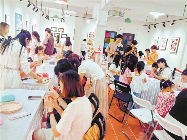 ▲“艺术体验官”们在观澜古墟体验非遗项目。