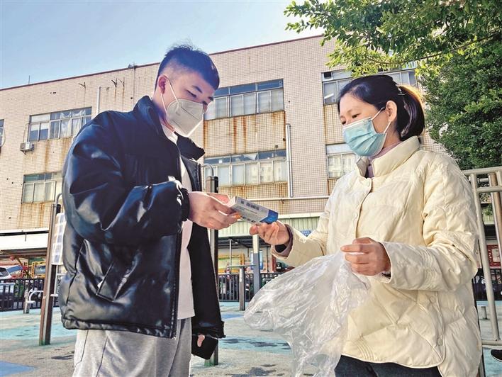 社区居民在“爱心共享药箱”进行药品互换互助。