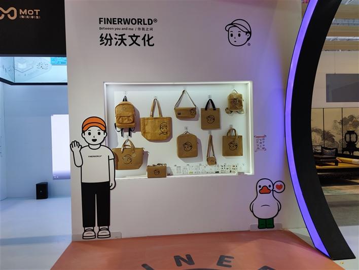 沿着“数字科技走廊”深入探游,第二站来到了数字内容创作区。该区域以软萌的卡通形象为主打,让人沉浸于潮玩文创世界。以黑白线条风为基础的自主IP“FINERWORLD”品牌形象出现在不同周边产品中;“如果历史是一群喵”奇趣可爱;启迪数科展示自主研发MoT物元孪生平台,在展厅模拟打造“数字实验室”。