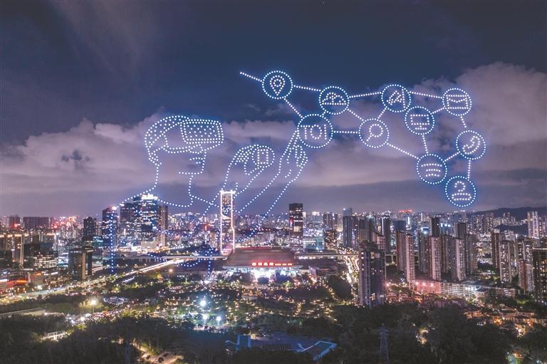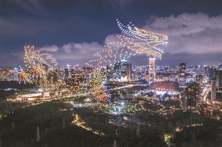 除此之外,无人机方阵还呈现了寓意龙华生态文明建设、数字科技等图案和场景。数字龙华、奋斗龙华、生态龙华、龙舟竞渡等元素交相辉映,点亮龙华夜空,为期待观赏观澜河龙舟赛的市民群众提前奉上一场极具科技感和艺术感的视觉盛宴。