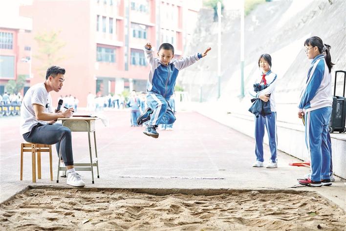 振能学校落实“双减”运动会跳远比赛。(资料图片)