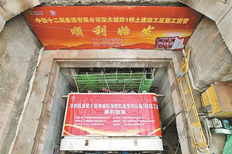 近日,深大城际全线首台顶管机在龙胜站附属B出入口顺利始发。